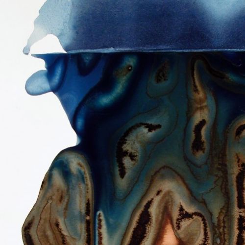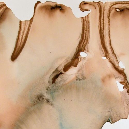 These materials are put together outdoors, sometimes with paper towels or sheets of plastic. Gravity, surface tension and evaporation are allowed to run their course(s). About half the attempts are lost at sea. The process is more beach combing than painting. A vacation from grinding out your own mark on a piece of paper. This work shares the same aesthetic as Raku firings with it’s rubble of failures next to the kiln. Serendipity plays its irreplaceable role.